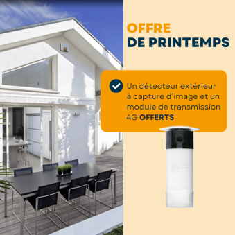 Pour l’achat d’un système d’alarme DAITEM, un détecteur extérieur à capture d’image et un module de transmission 4G OFFERTS.